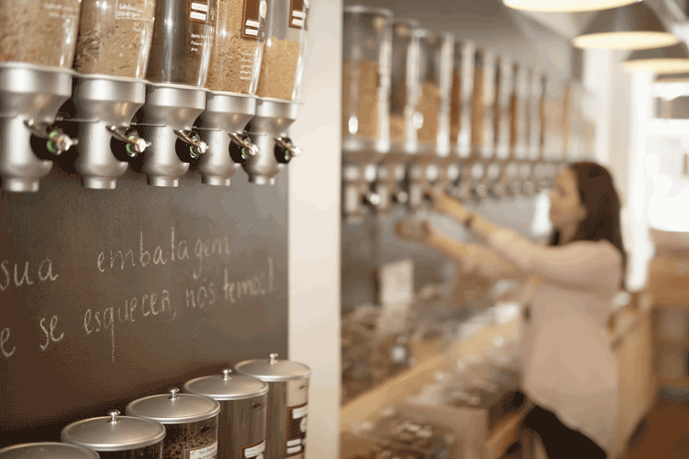 Atualmente, são a primeira loja em Portugal e uma das pioneiras na Europa e no mundo a dispensar as embalagens e a vender exclusivamente a granel. Eunice Maia sublinha com “orgulho” o facto de terem sido reconhecidos internacionalmente como os “introdutores do sistema BYOC – “Bring your own container” – no mercado nacional”. O alcance de todo o trabalho que têm feito já chegou ao outro lado do Atlântico onde foram convidados para apresentaram o projeto e a loja no Brasil, durante a semana “Lixo Zero Brasil”. “Tivemos a oportunidade de, entre oradores internacionais, falarmos sobre o nosso exemplo em universidades, conferências e fóruns”, conta a responsável. Das várias distinções, a Maria Granel foi também “referência” com “uma loja Zero Waste pioneira internacionalmente na plataforma Zero Waste APP”.