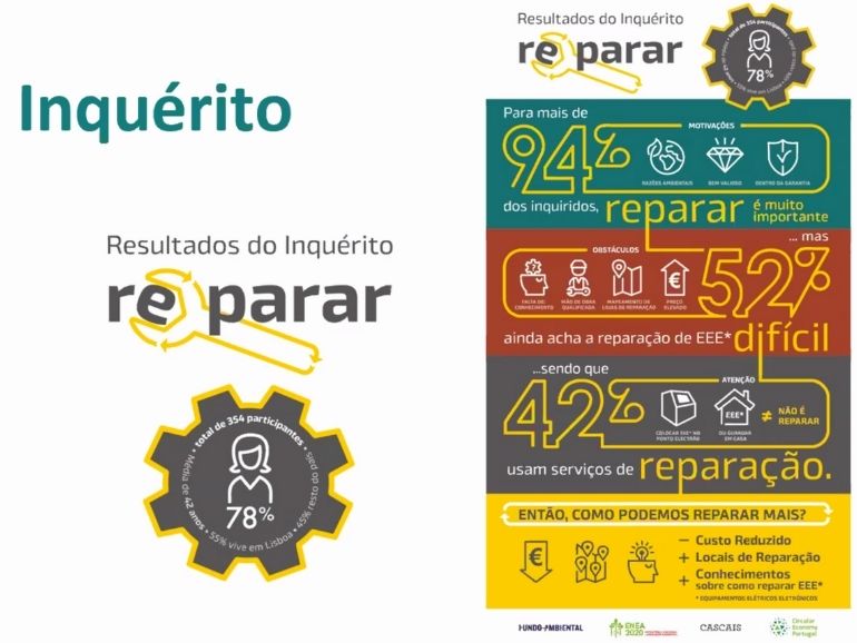 A CEP (Circular Economy Portugal) e a Ambiente Cascais juntaram-se para colocar a “Reparação” no centro da discussão. Partindo do conceito “Repair Café” (ou Café Conserto), as entidades querem replicar este projeto ao nível nacional, juntando todos os atores em prol do setor. O “Repair Café” junta num evento comunitário e gratuito vários reparadores voluntários com pessoas que têm algo a reparar e vontade de aprender. No âmbito desta comunhão, as entidades promoveram esta terça-feira, 15 de dezembro, um seminário onde deram a conhecer os resultados do inquérito do “projeto RE-PARAR”, realizado a 354 pessoas.