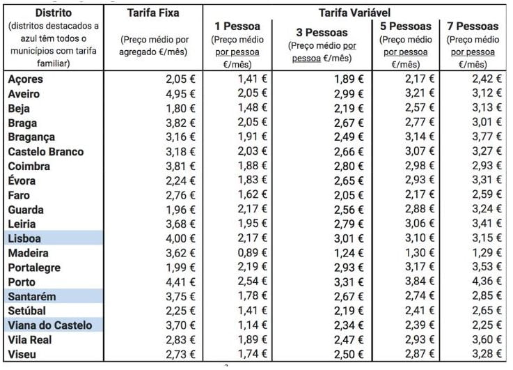 Em 2021 surgiram três novos tarifários familiares, elevando para 218 (70,7% do total nacional) o número de municípios com esta tarifa de abastecimento de água. São eles: Maia e Matosinhos, ambos no distrito do Porto, e Torre de Moncorvo, em Bragança.