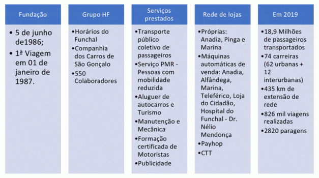 A empresa Horários do Funchal, é uma sociedade comercial por ações de natureza privada, mas de capitais públicos, foi constituída a 5 de junho de 1986 sendo seus sócios fundadores e atuais a Região Autónoma da Madeira com 95% do capital social e a Empresa de eletricidade da Madeira SA com os restantes 5%. Os primeiros autocarros ao serviço publico começaram a circular no dia 1 de janeiro de 1987 e ate aos dias de hoje continua a sua missão que é a prestar o melhor serviço de mobilidade às pessoas, com qualidade e pontualidade, na sua área de atuação.