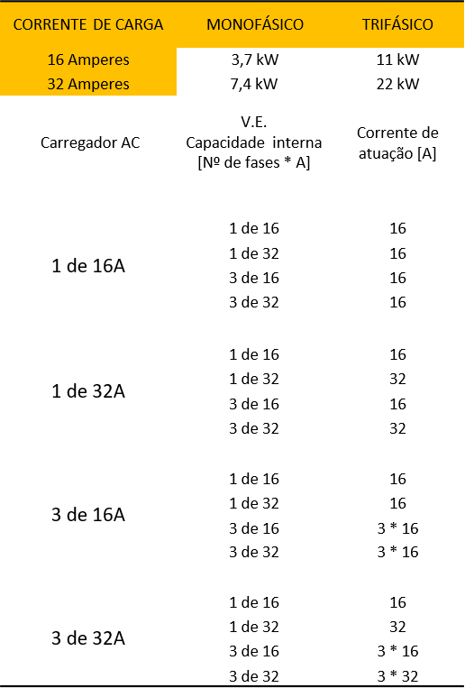 Ou seja, os carregadores de 11kW e de 22kW são carregadores trifásicos, com correntes de 16A e de 32A respetivamente.