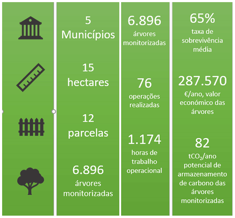 Este projeto promove, atualmente, o investimento na reabilitação de 20 hectares de áreas de floresta nativa, de gestão pública nos 8 Municípios da LIPOR.
