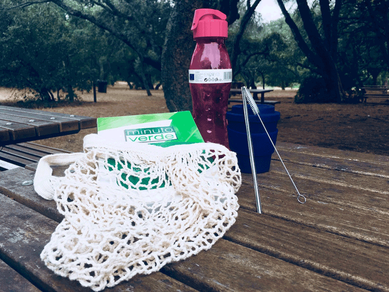 - Garrafa de água reutilizável, quer em vidro, quer em inox, que permite transportar as nossas bebidas e mantê-las fresquinhas;