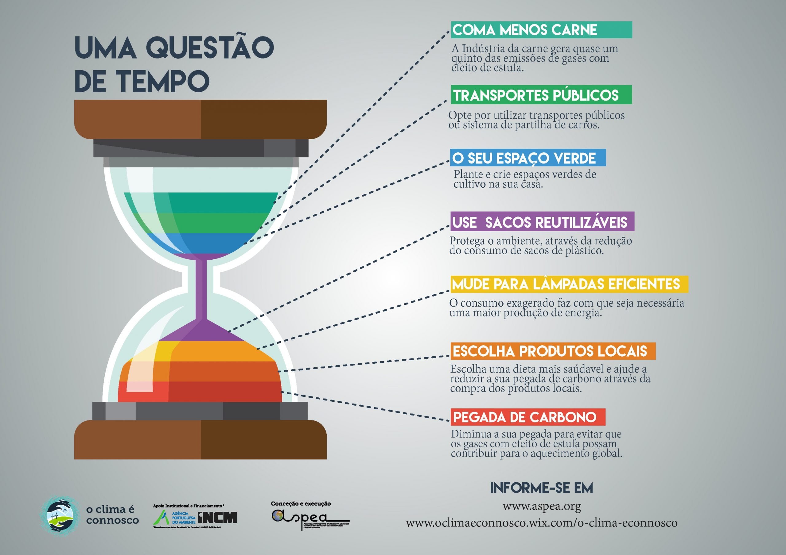 No âmbito do projeto “O Clima é connosco” promovido pela Associação Portuguesa de Educação Ambiental (ASPEA), realizou-se um concurso dedicado a infografias relacionadas com as alterações climáticas em Portugal. O vencedor deste concurso de 2016 foi a infografia “Uma Questão de Tempo”.